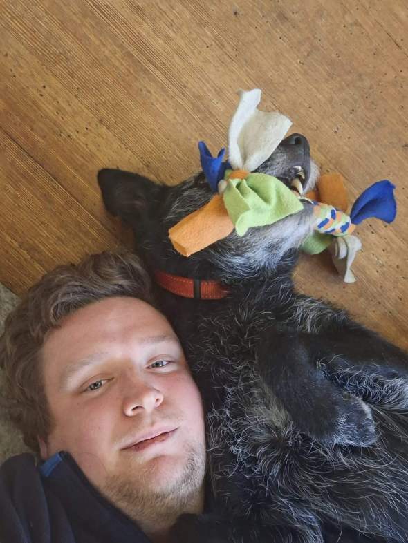 Er meint, er hält mich hahah aber glaub mer, i bi dr Boss uf däre Couch!